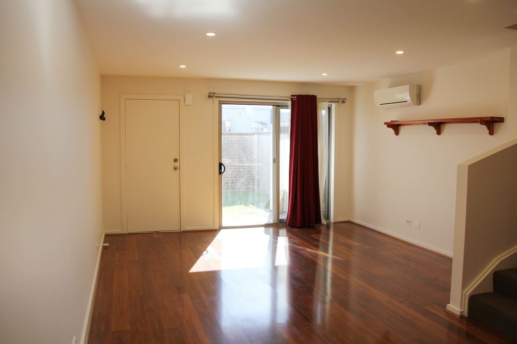 – Spacious and light-filled living area with timber flooring to the front of the home overlooking a private front courtyard