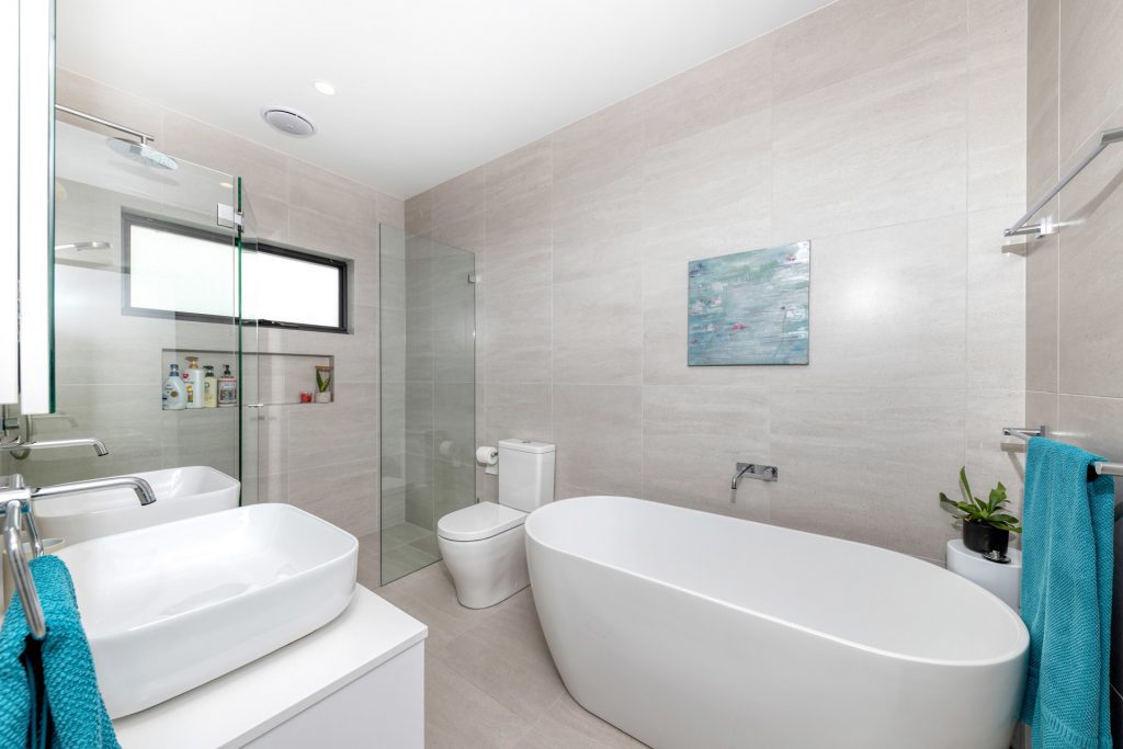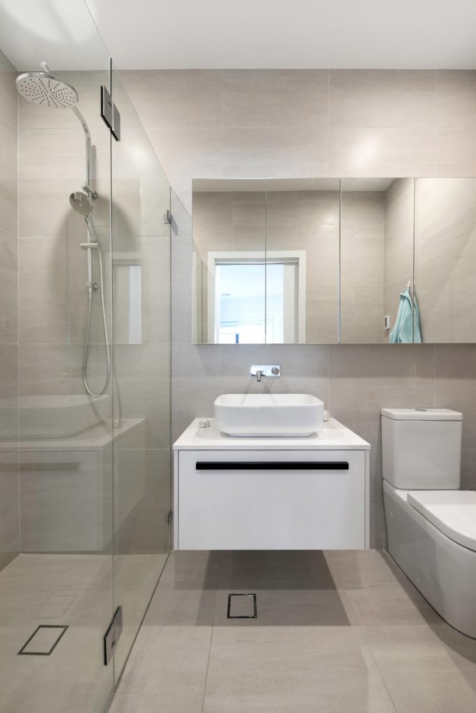 Modern bathrooms tiled to ceiling and wall hung vanities