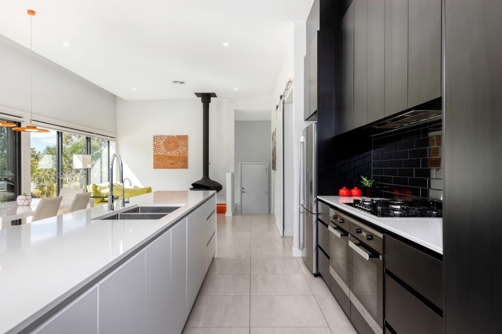 Modern kitchen with island bench and Miele appliances (2 ovens)