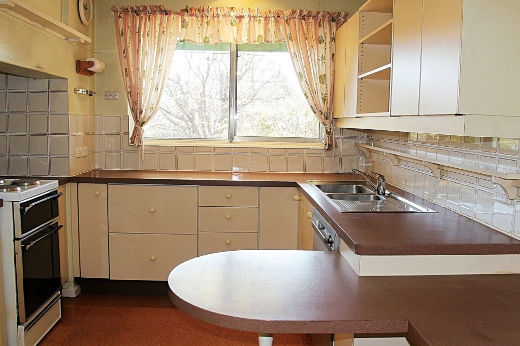 Segregated kitchen with dishwasher, electric cook top, plenty of storage and bench space with built-in breakfast bar.