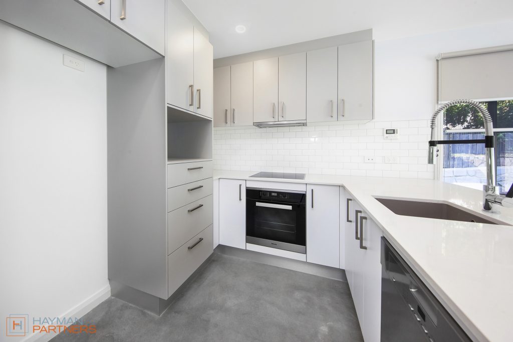The modern kitchen boasts stone bench tops, Miele stainless steel appliances, induction cooking and a feature handheld tap. The living area which is covered with polished concrete, flows out to your own private courtyard and there is also a rear private courtyard with storage shed and a water tank for efficient water usage. Both the en-suite and main bathroom have been tastefully designed with quality fixtures.