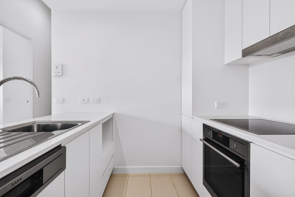 The apartment features a light-filled open plan living and dining area, complemented by a sleek, functional kitchen with stone benchtops, stainless steel appliances, dishwasher and ample storage. The balcony overlooks beautifully landscaped internal gardens, extending your living space outdoors and providing a peaceful setting to relax or entertain.