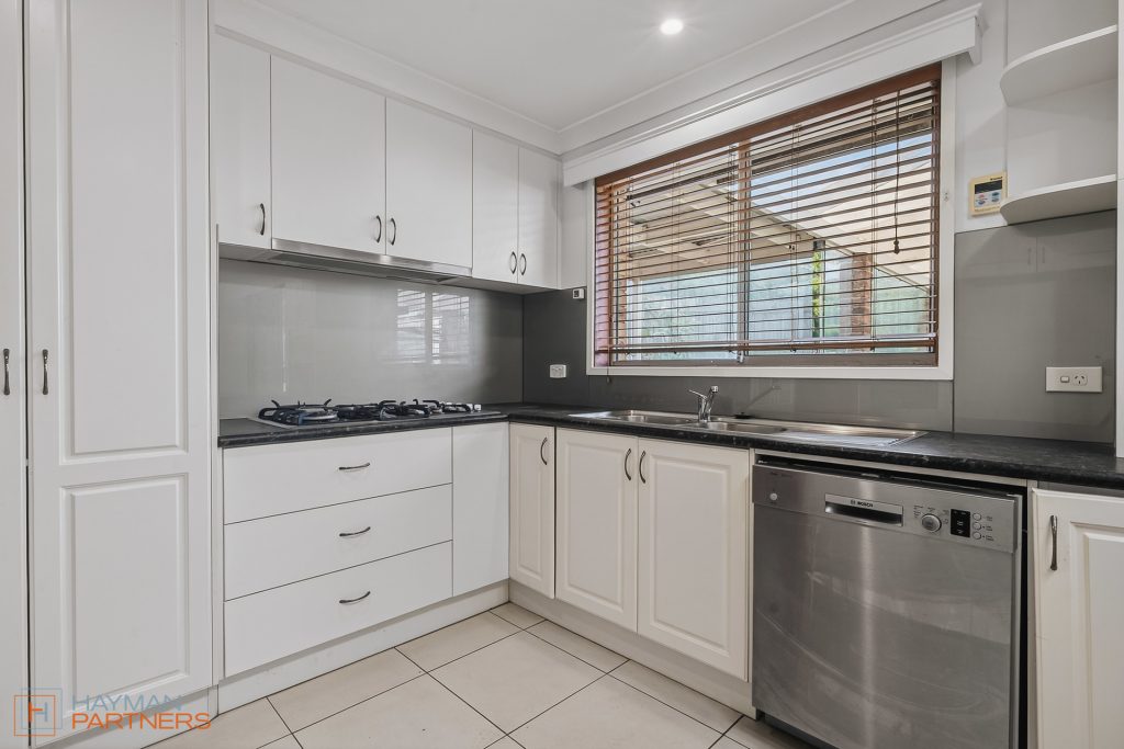 – Spacious kitchen with abundant cupboard space, dishwasher and gas cooking