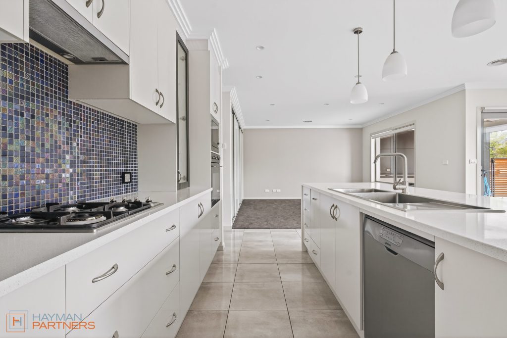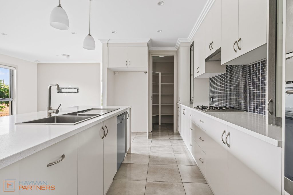 As you enter the home, you are welcomed to a thoughtfully designed layout with an open-plan living area. The kitchen features quality fittings including dual sinks, tiled splash-back, a large walk-in pantry, SMEG appliances, LED strip light for ambiance, and a waterfall stone benchtop. The kitchen flows directly into the dining and living areas, making it perfect for staying connected with family and guests. Positioned with separation in mind is an additional living area at the front of the house and a rumpus room.