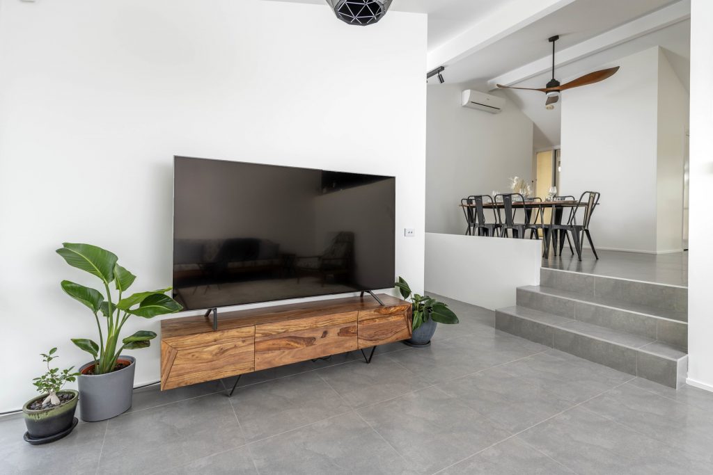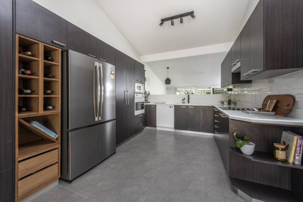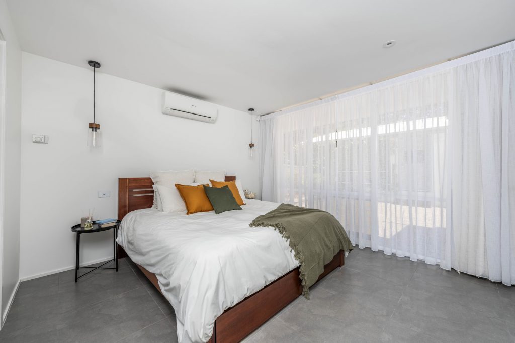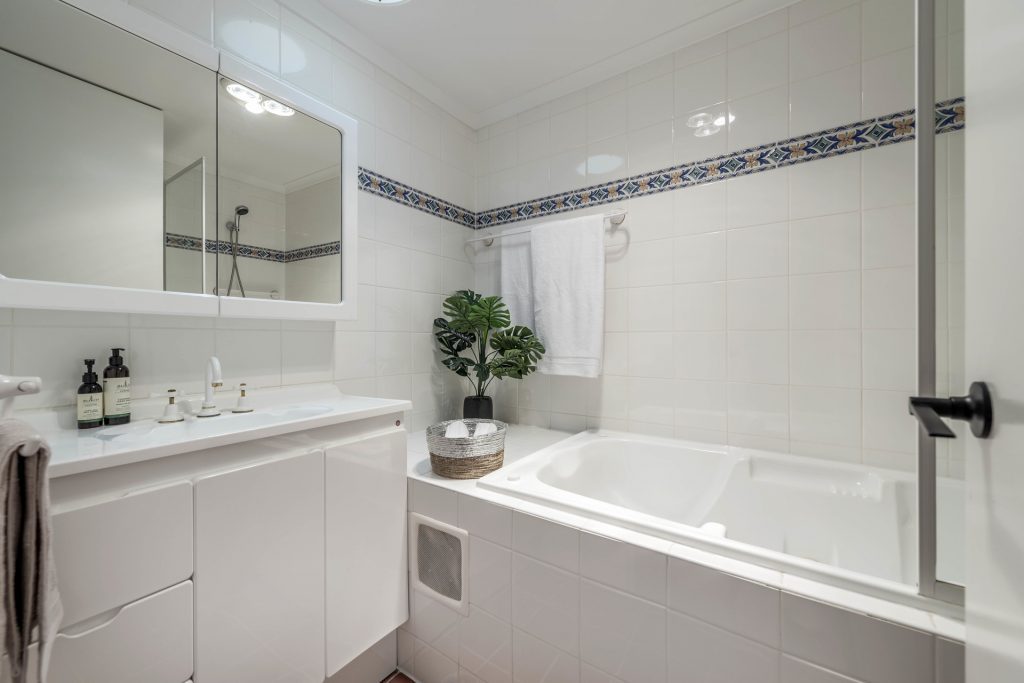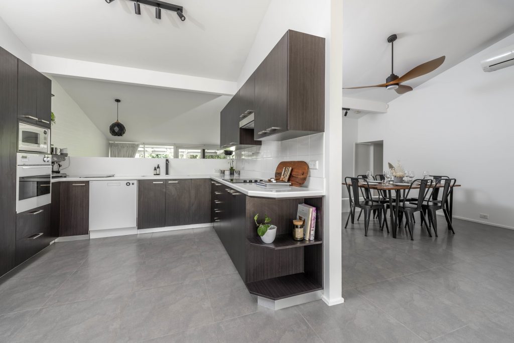 – Modern tiled flooring through the home with in slab heating.