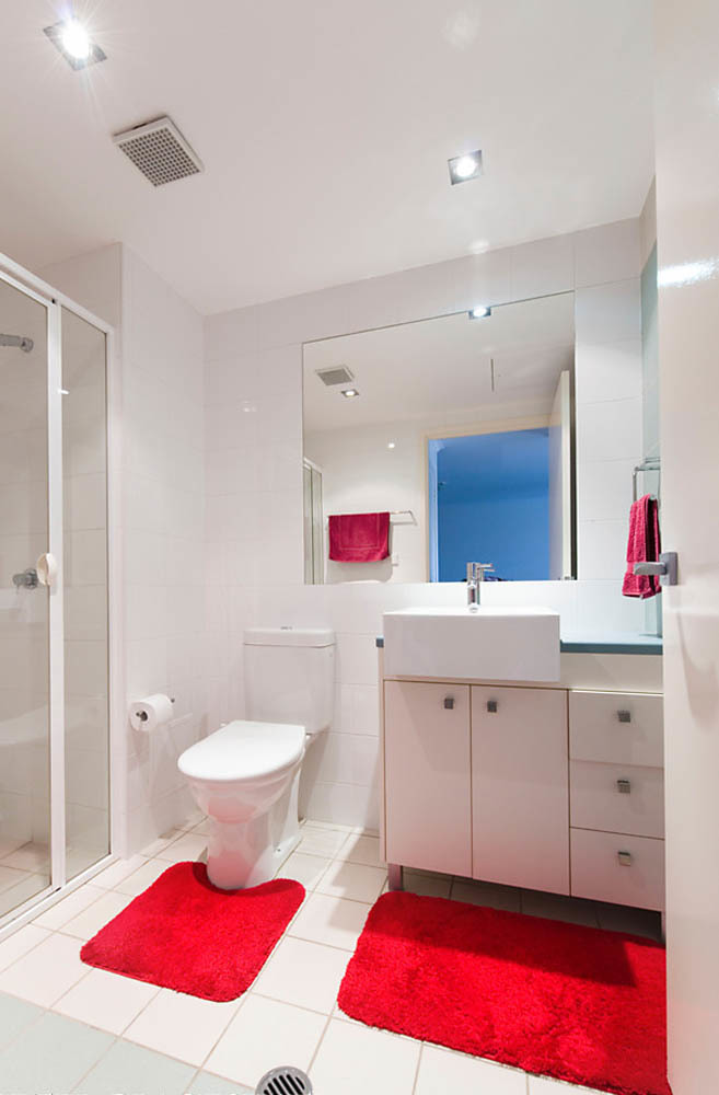 – Master bedroom includes queen-sized bed, built-in mirrored wardrobe storage