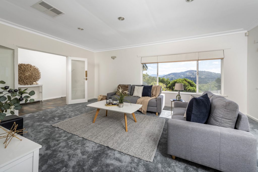 The home has 4 good sized bedrooms, all with built-in wardrobes, the master with functional ensuite and all bedrooms with stunning views. The home boats 3 main living areas to spread out and enjoy with the added luxury of a sun room offering space, serenity and location. A large entertaining deck at the top of the backyard is the perfect place to relax with friends, enjoy a meal and take in the views out to Mount Taylor, Woden Valley and to sunsets over the Brindabellas.
