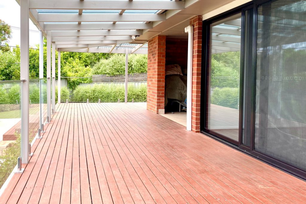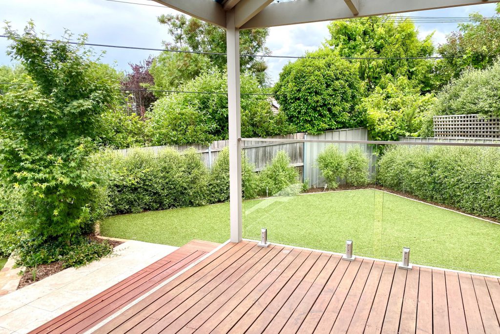 Gorgeous enclosed rear yard with entertainers deck and leafy outlook.