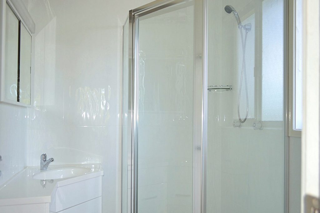 -Main bathroom has bathtub, new vanity and separate shower recess.