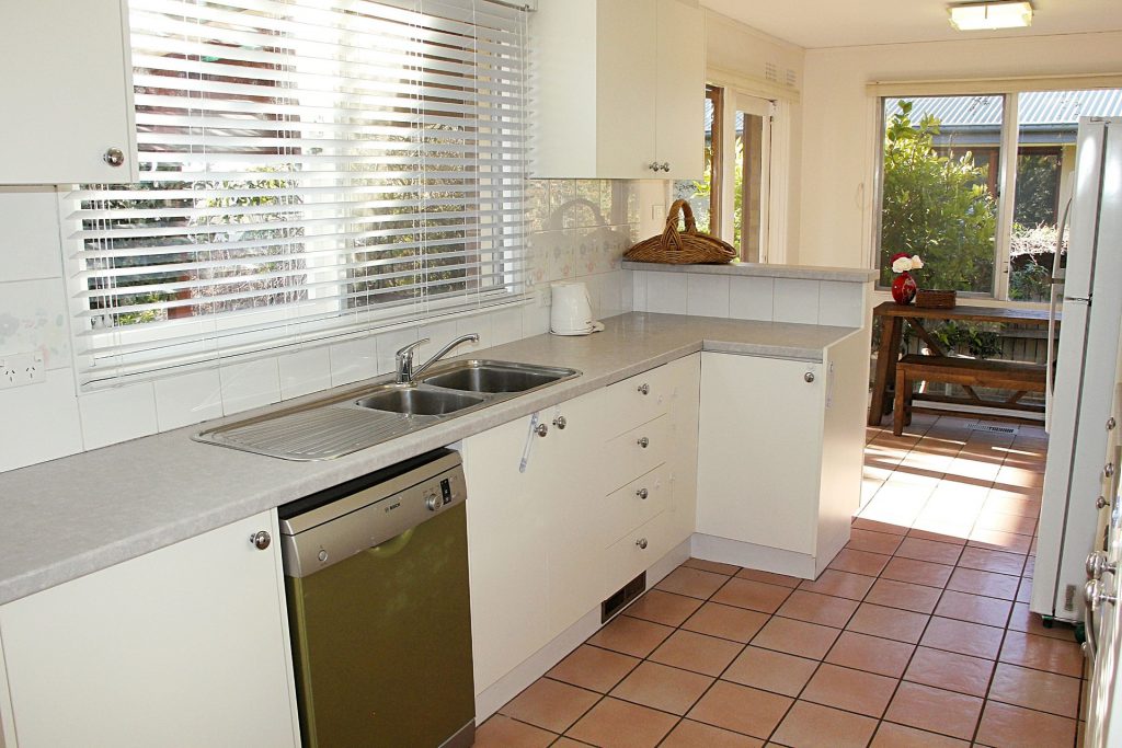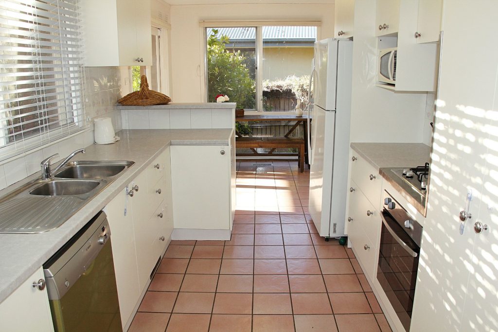 Functional kitchen with dishwasher, gas cooking, microwave, fridge, kettle, basic cutlery and crockery plus plenty of storage.