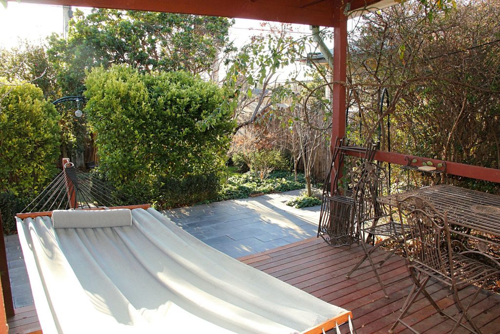 The kitchen opens to deck area with hammock for ultimate relaxation, a table setting and established garden with maintenance included.