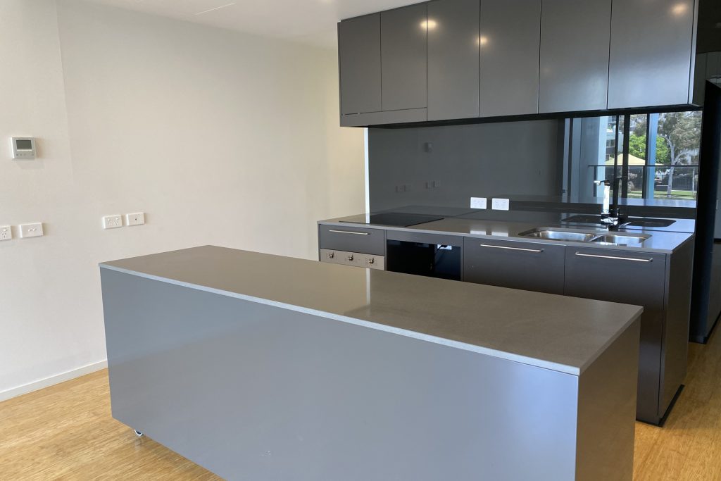 – Open plan kitchen, lounge & dining all with balcony outlook and a design that allows for flexible placement of furnishings with a clever moveable island bench