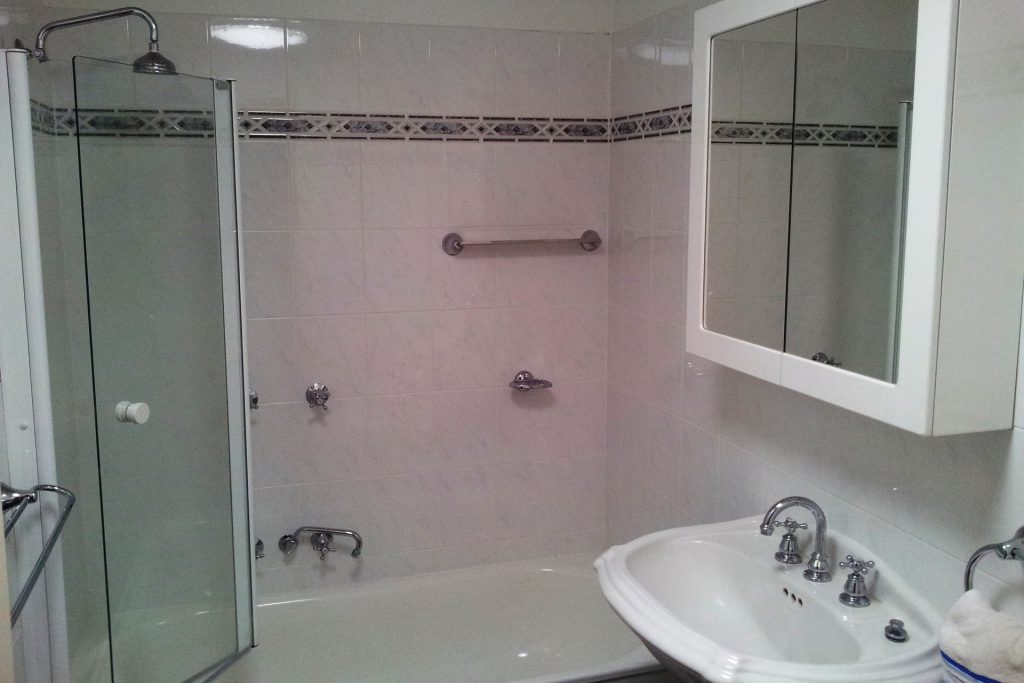 Two spacious bedrooms, both with built-in robes and pleasant garden views.