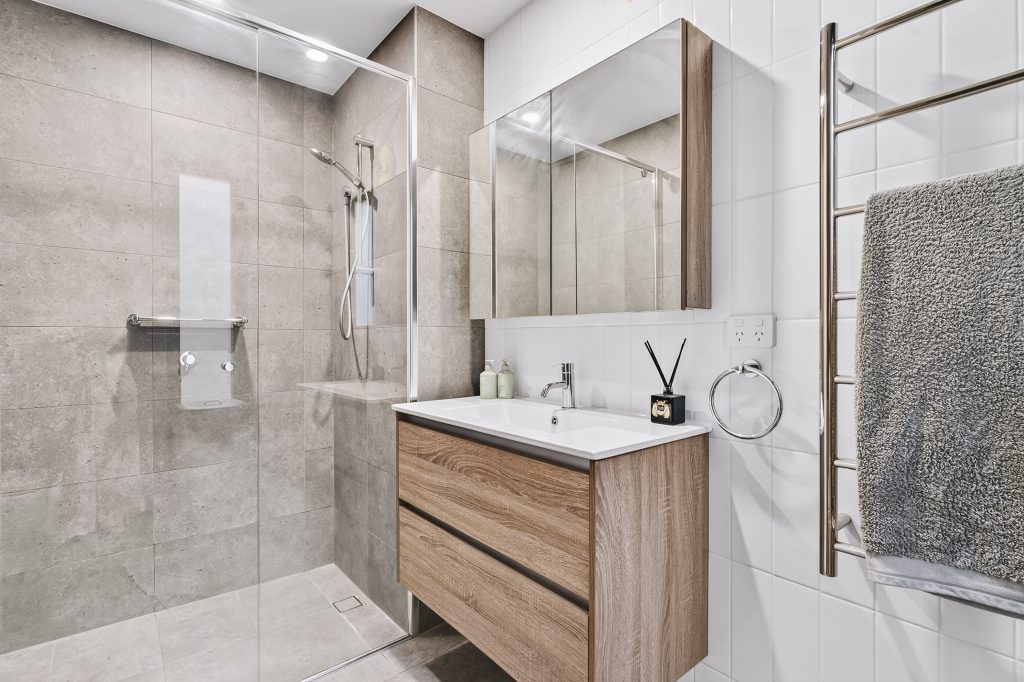 – Modern bathroom with quality fittings, underfloor heating and heated towel rail