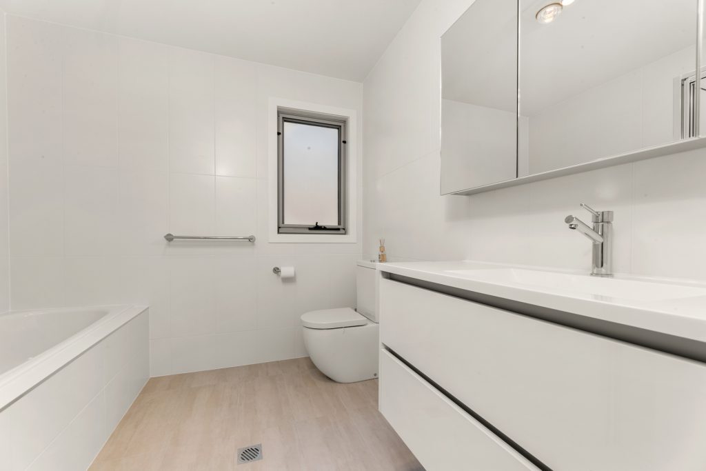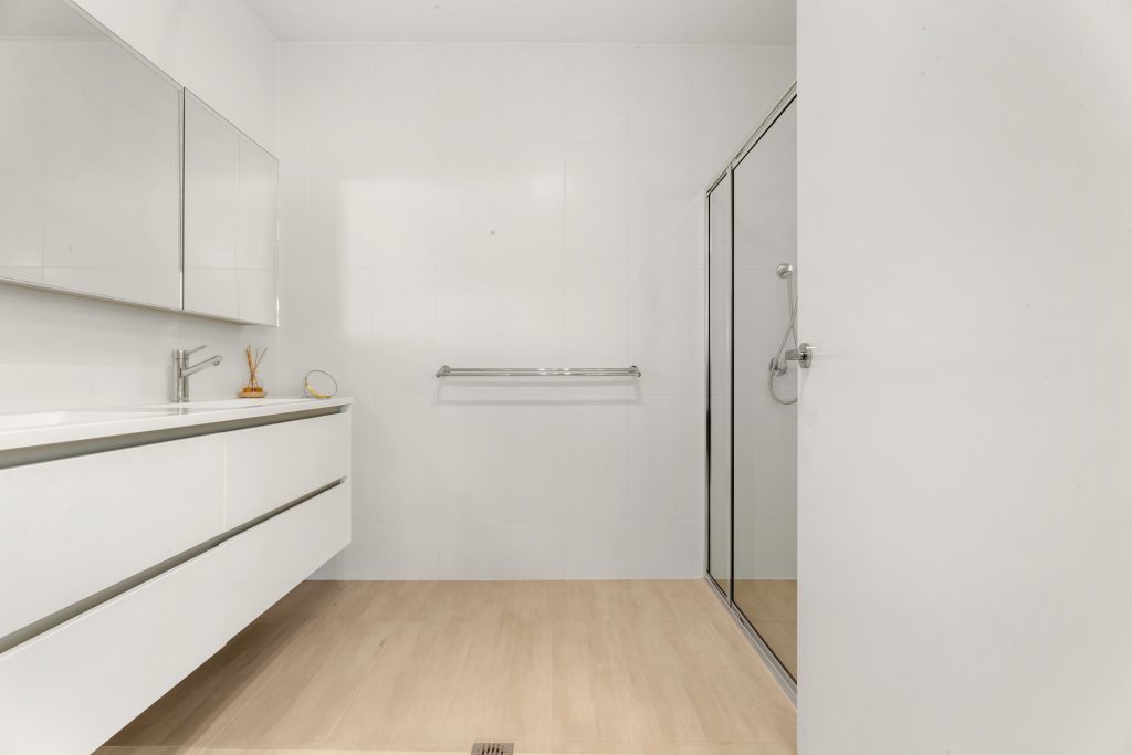 The ground floor offers a light-filled open plan kitchen, living and dining area, which opens onto the courtyard and undercover porch. On the ground floor, you will also find the European style laundry and oversized master bedroom with built-in wardrobe, under stair storage and ensuite with double sinks.