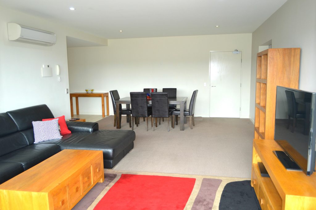 – Great sized lounge room includes contemporary chaise leather lounge, TV, Blu-ray player, 6 seat dining suite & additional furniture.