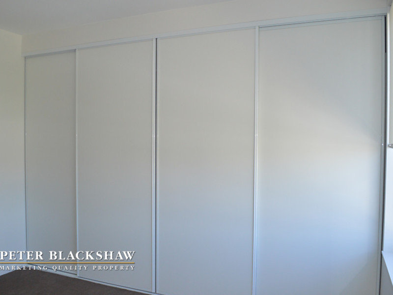 Large master bedroom with full wall-width double wardrobes, custom fitted shelving & hanging space for those who love an organised closet space. Attractive block-out Roman blinds as well as Roller blinds are a bonus.