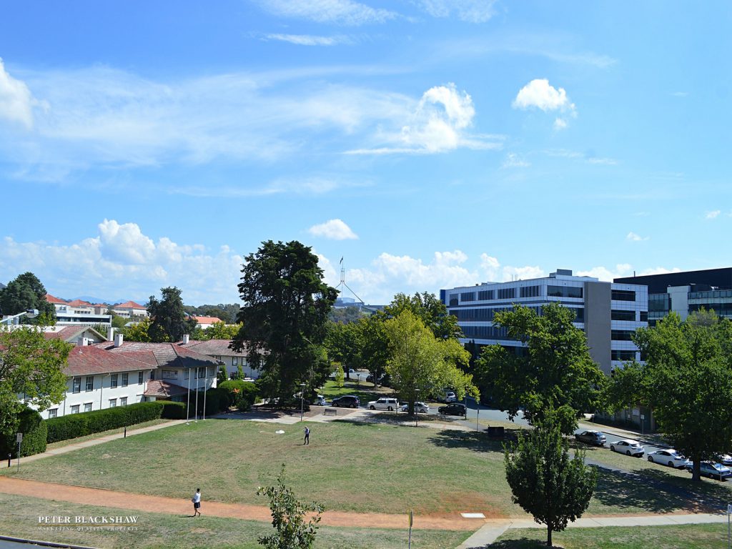 Panoramic 3rd floor wrap around views through floor to ceiling windows towards Parliament house