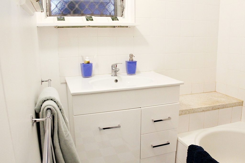 – Functional bathroom with bath/shower combination, modern vanity and convenient separate two-way toilet.