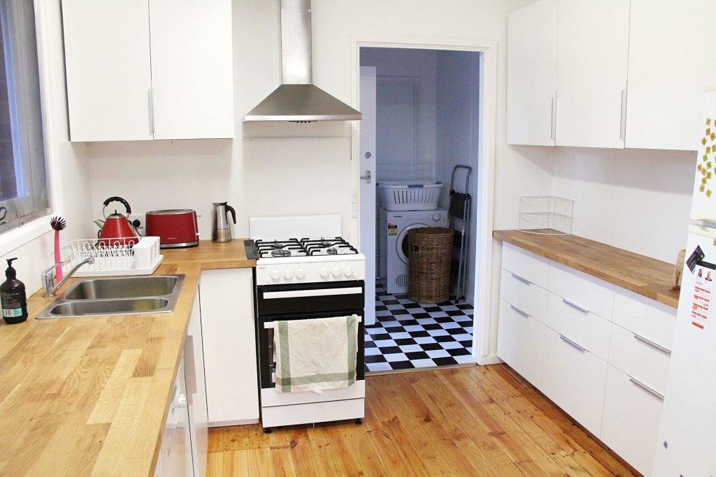 – Gorgeous kitchen provides attractive timber bench tops with crisp white surrounds, dishwasher and gas cooking.