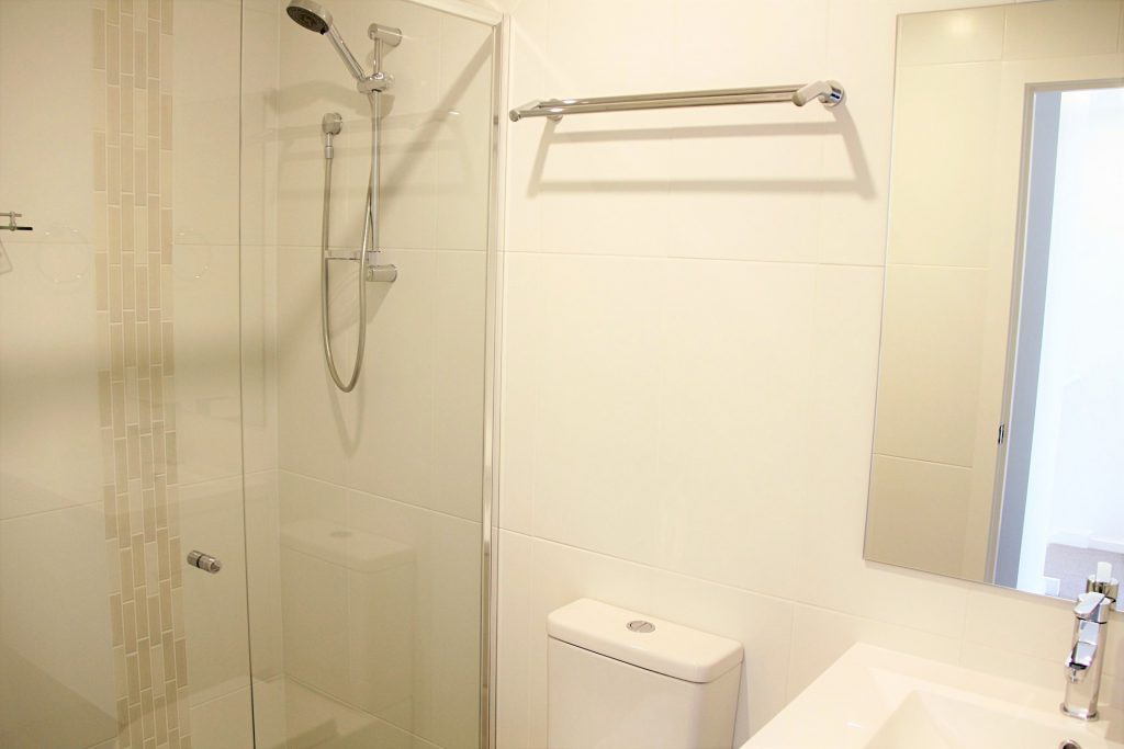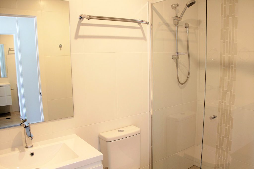Sparkling bathrooms both including frame-less shower recess & modern vanities.