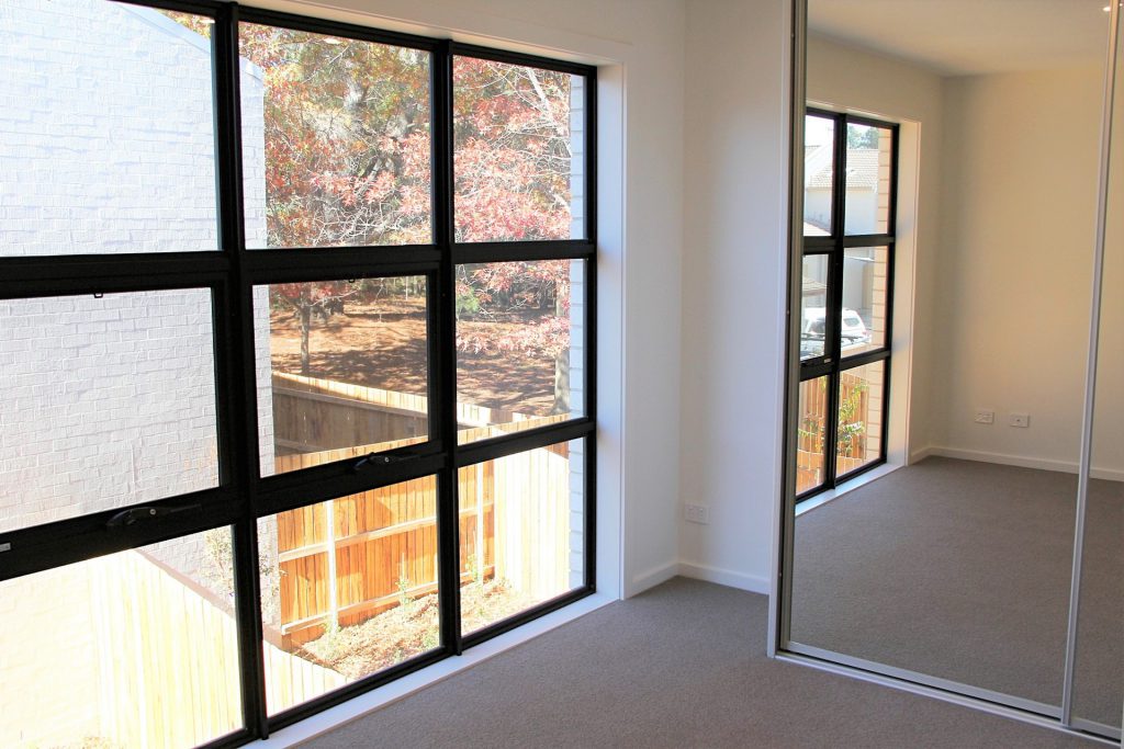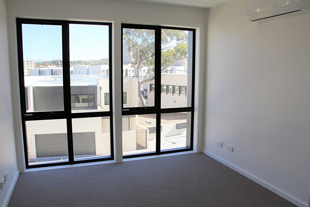 Both bedrooms include mirrored built-in robes and large windows.