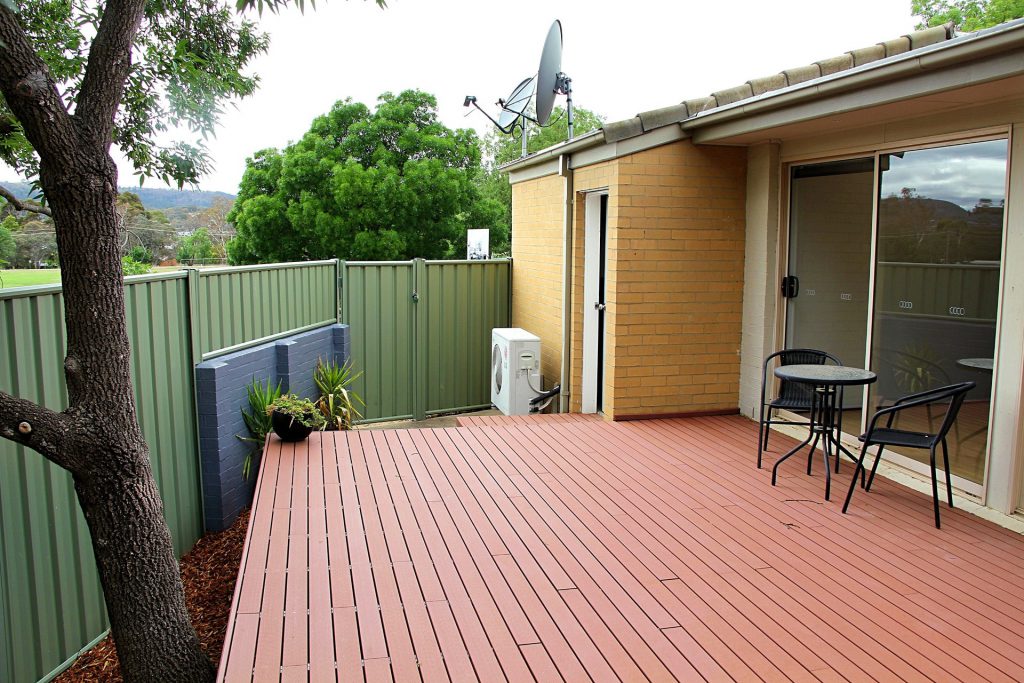 Sundrenched timber deck with lovely views.