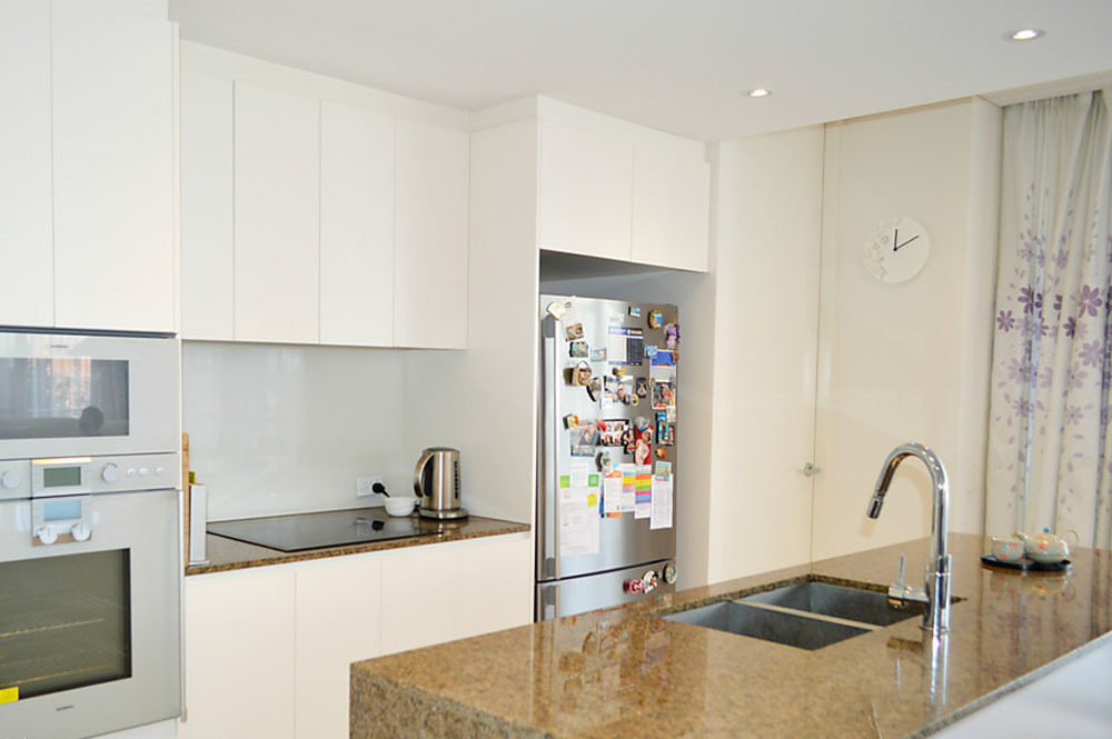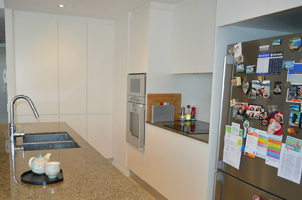 Deluxe kitchen with top quality appliances including German Gaggenau pyrolitic oven with additional built in microwave/mini oven combination, induction cooktop & Bosch dishwasher. Large fridge capacity is a bonus and the fabulous stone island bench is excellent for food preparation and relaxed meals. Sleek custom cabinetry including large pantry storage.