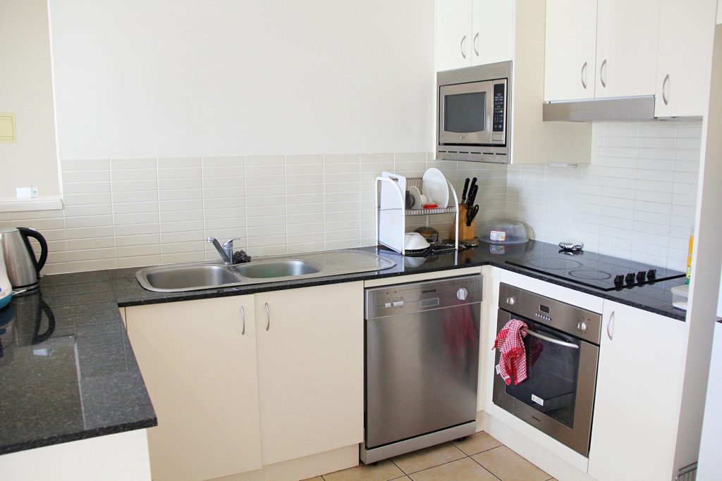 – Modern kitchen with attractive stone bench tops, dishwasher, electric cooking and microwave included.
