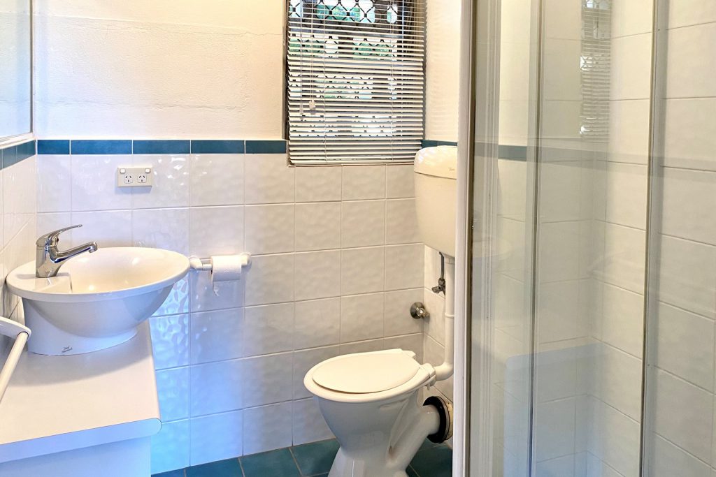 – Bathroom with shower and toilet.