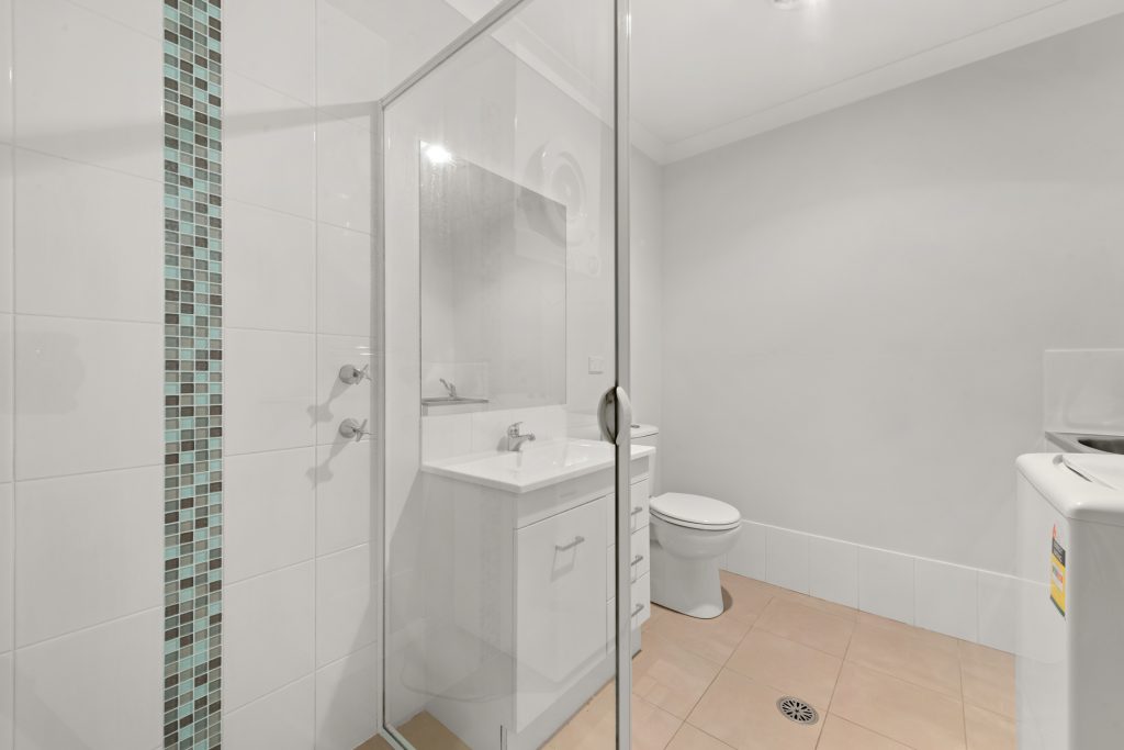 – Combined bathroom & laundry with washing machine & dryer.
