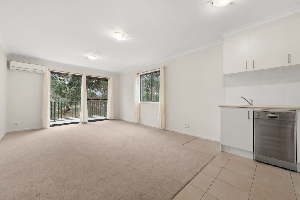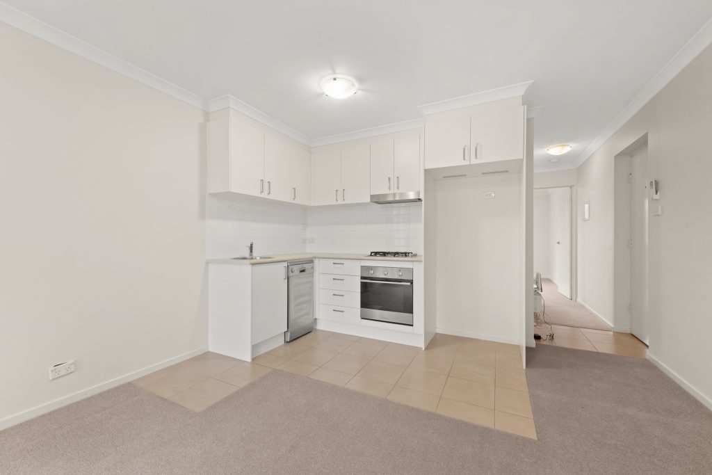 – Open plan kitchen & living – contemporary decor.