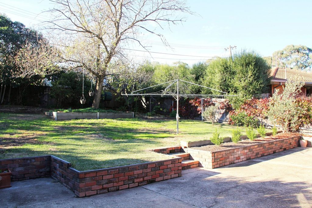 – Inviting enclosed established backyard with lovely shading trees and garden shed.