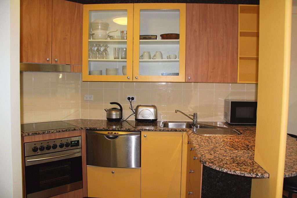 Contemporary kitchen with stone benchtops, stainless steel appliances including dishwasher, electric cooking & refrigerator. Microwave, cutlery, crockery and utensils all included.