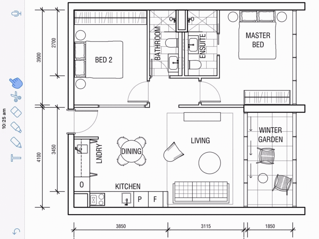 Two bedrooms, two bathrooms, two car spaces