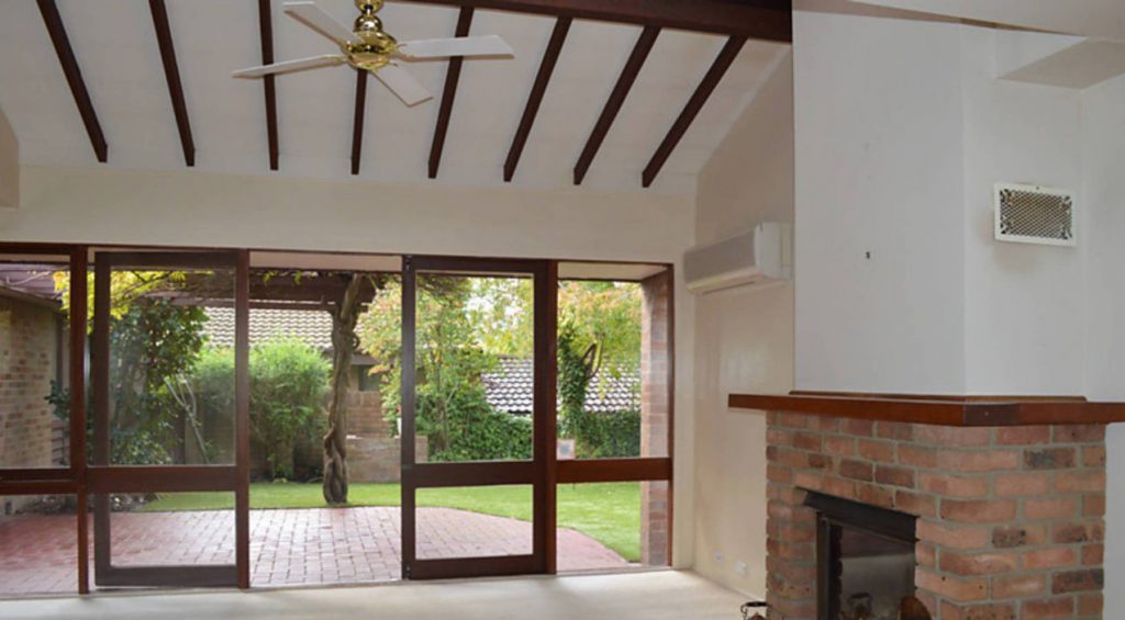 Reverse cycle air conditioner & ceiling fan for the summer in living area.