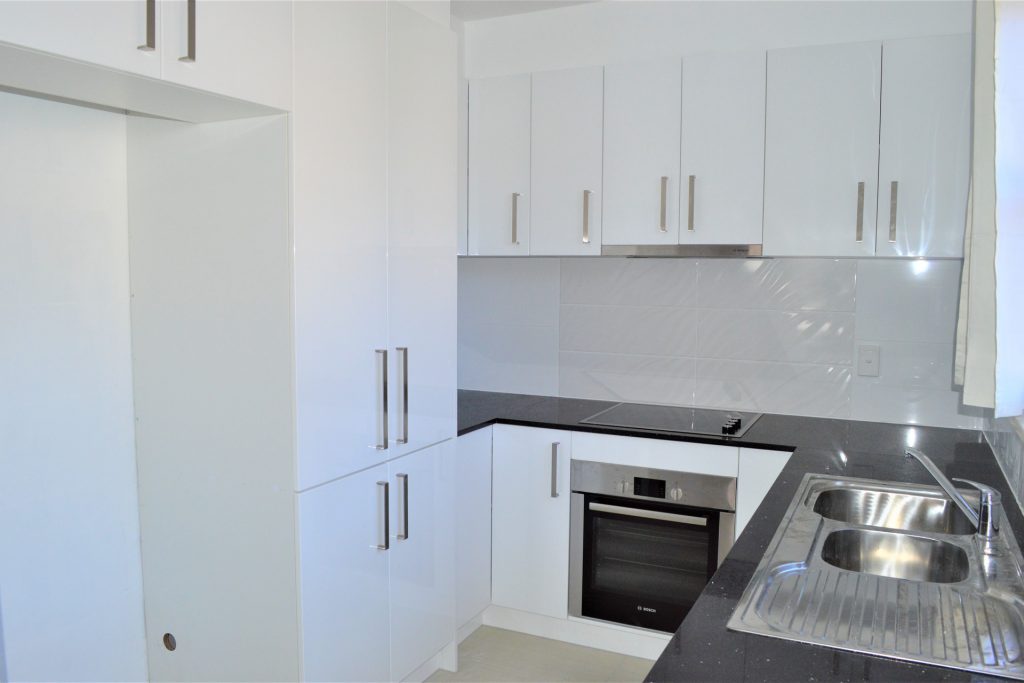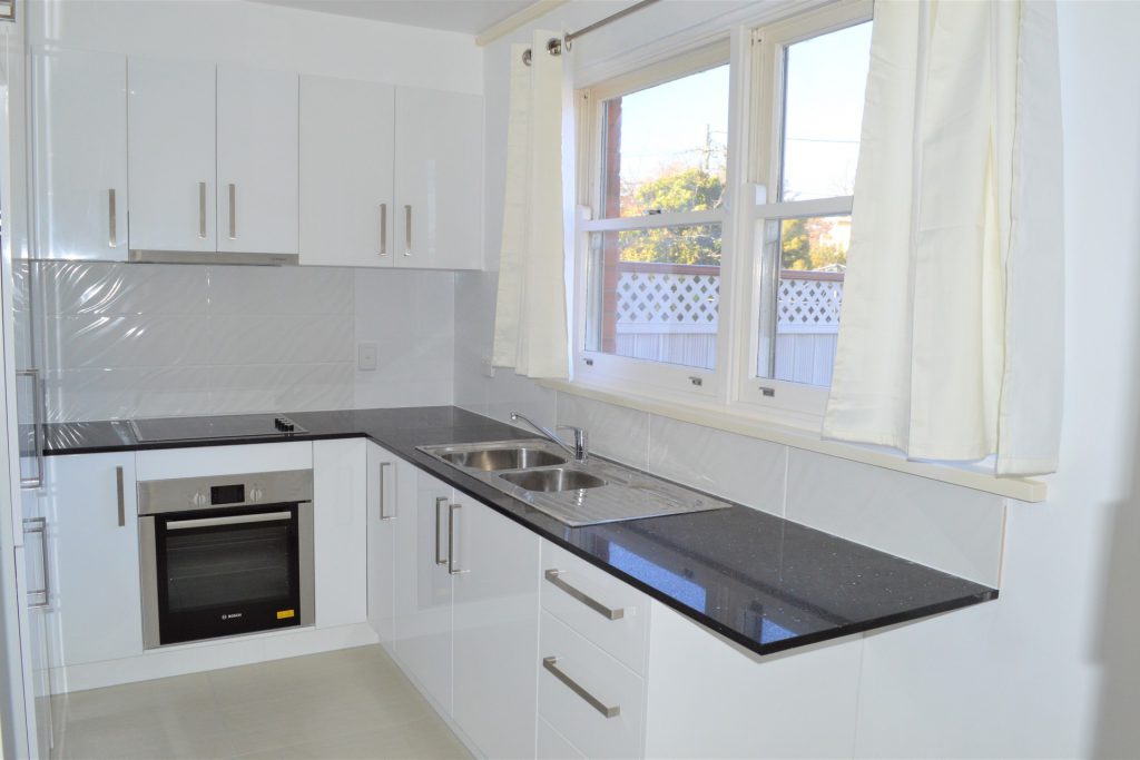 Stone benchtops and new appliances in the recently installed kitchen