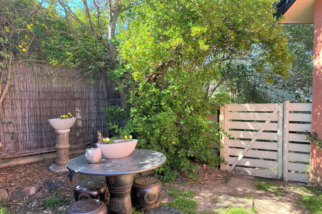 Surrounded by leafy green trees and shrubs this creates wonderful outdoor living spaces including a private paved courtyard perfect for entertaining or just sitting and enjoying the outdoors in peace and serenity.