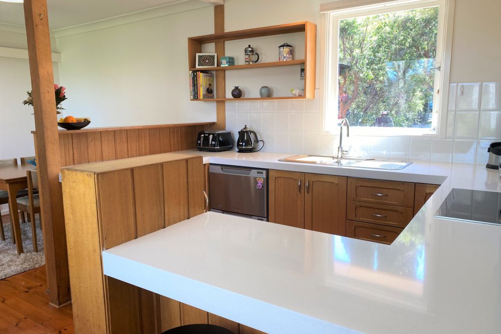 – Modern stone bench tops in the kitchen with quality appliances including an induction cooktop