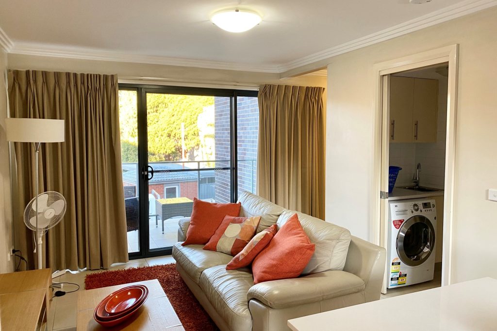 This apartment features 1 bedroom, 1 bathroom and laundry, open plan kitchen and living room with floor to ceiling showcase double glazed windows flowing to a balcony.