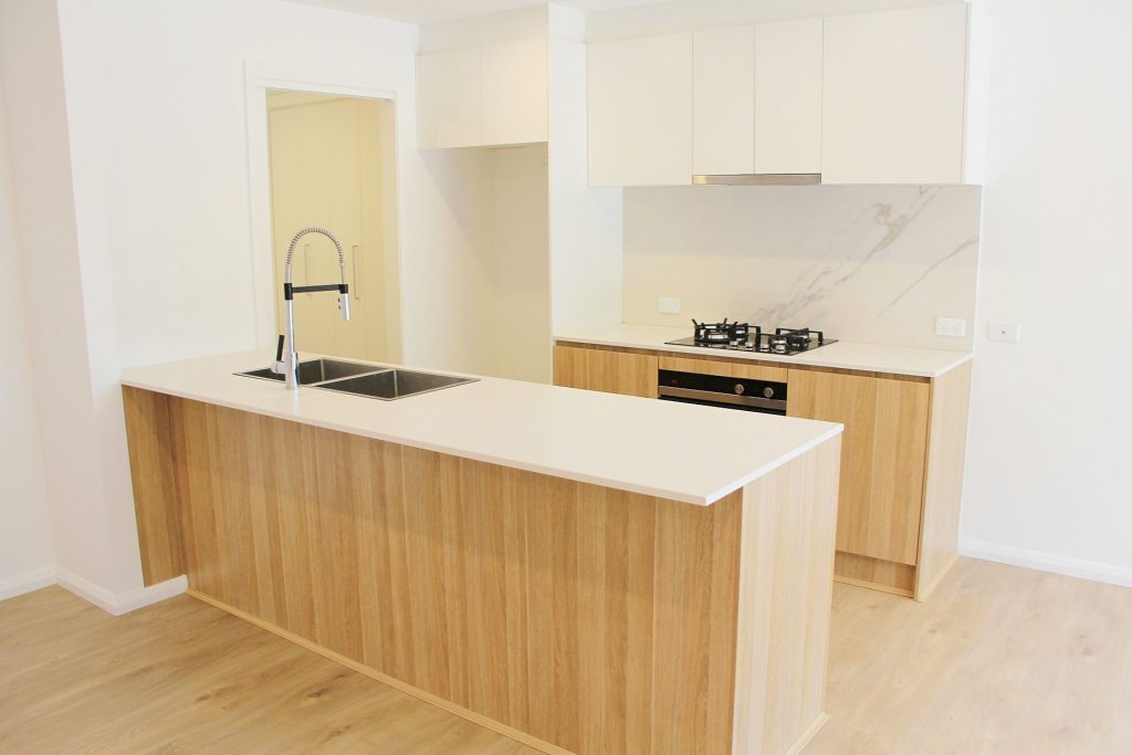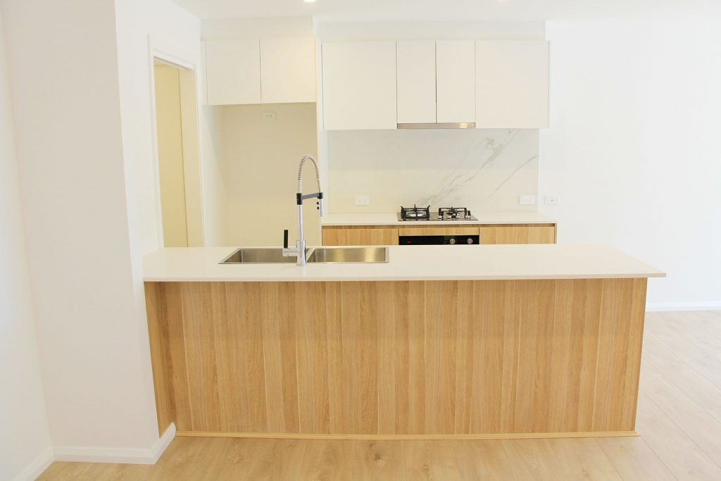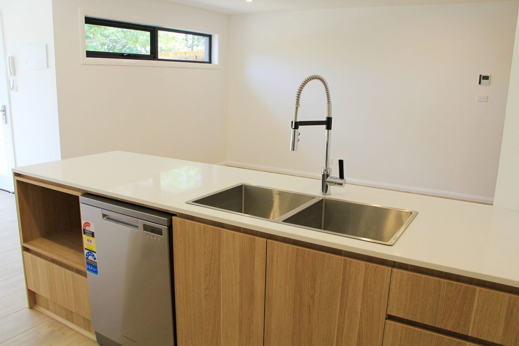 Beautiful contemporary kitchen with stone bench-tops, gas cooking, dishwasher, dedicated microwave space and timber features.