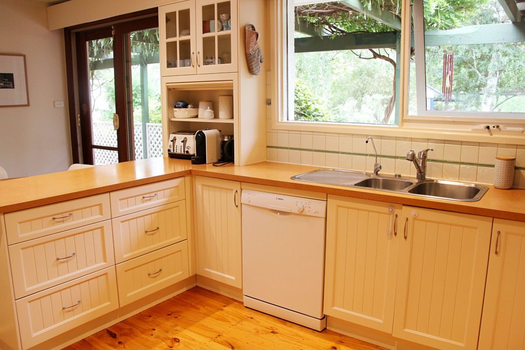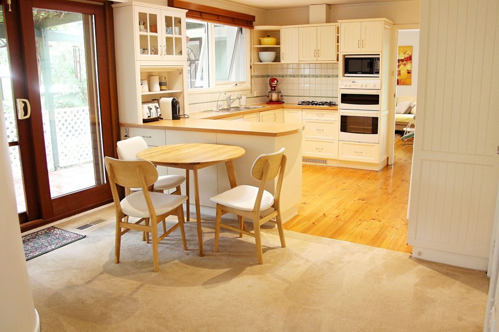 Functional kitchen with gas cooking, dishwasher, great storage space and additional meals area adjoining.