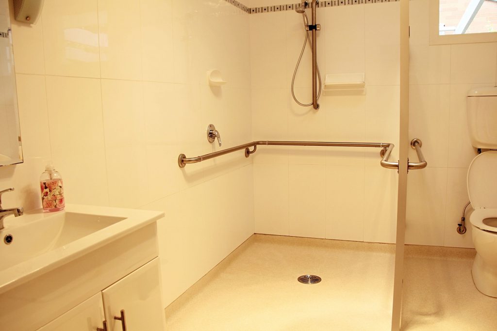 Large ambulant access bathroom with shower and toilet plus great storage.
