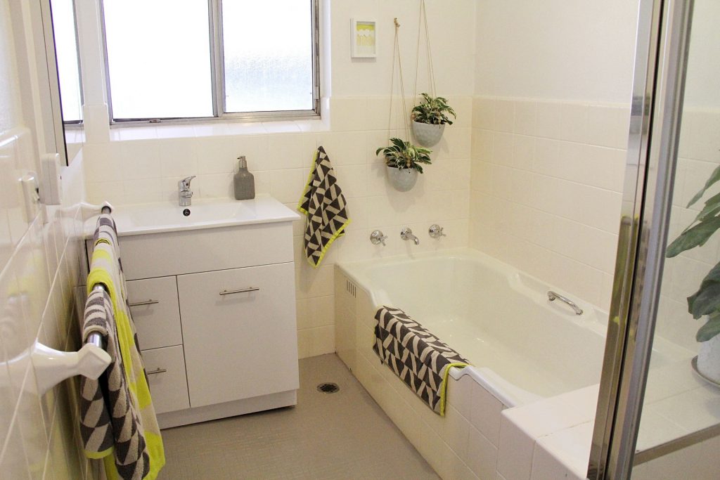 – Stylish bathroom with modern vanity, bathtub and shower plus convenient separate toilet.