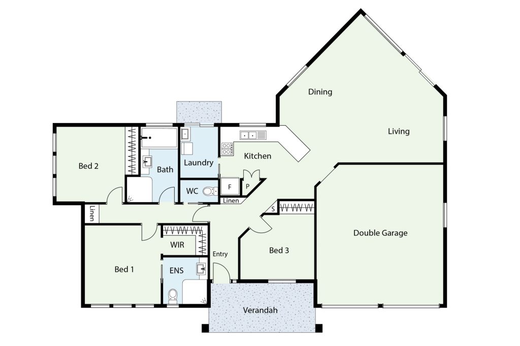 Spacious north facing open plan living area with slow combustion wood stove plus double glazed windows.