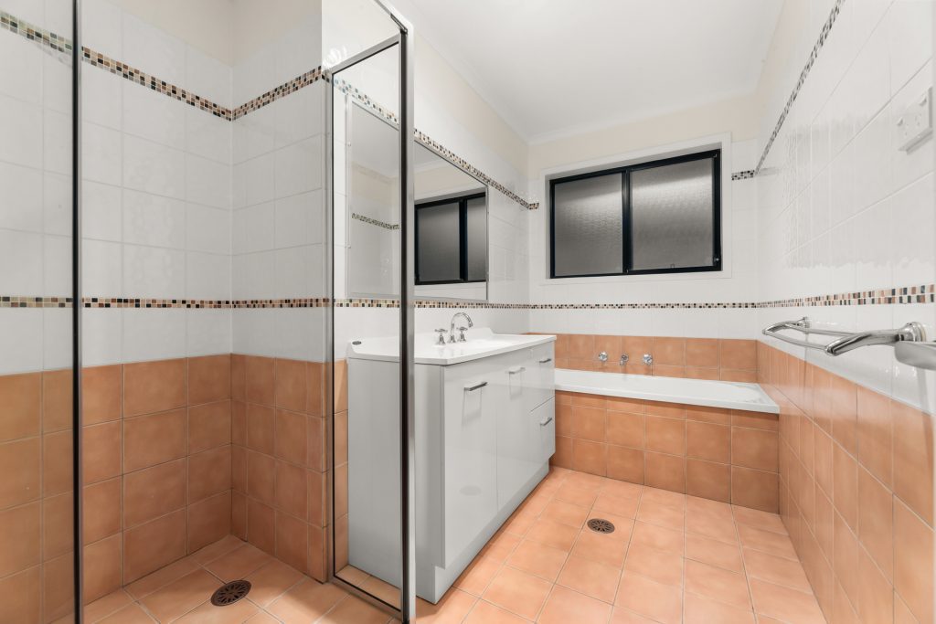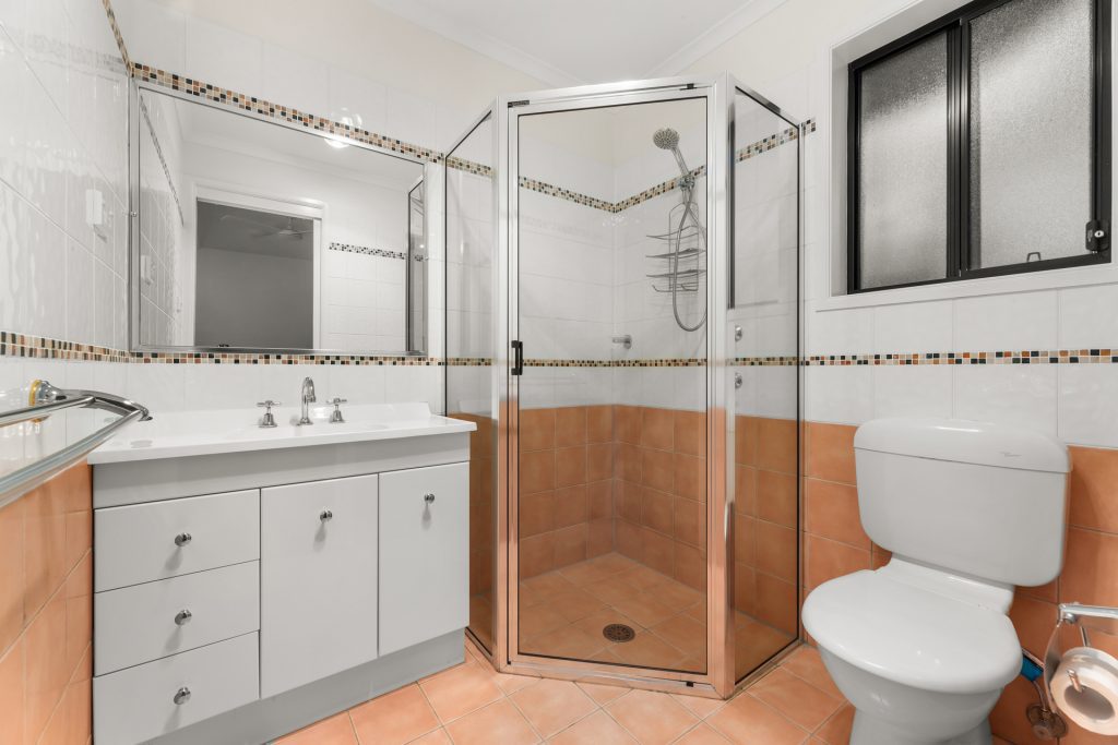 Main bathroom includes shower, bath and convenient separate toilet.