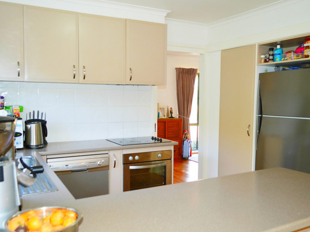 Spacious kitchen with plenty of cupboard and bench space including pantry, breakfast bar and modern appliances.