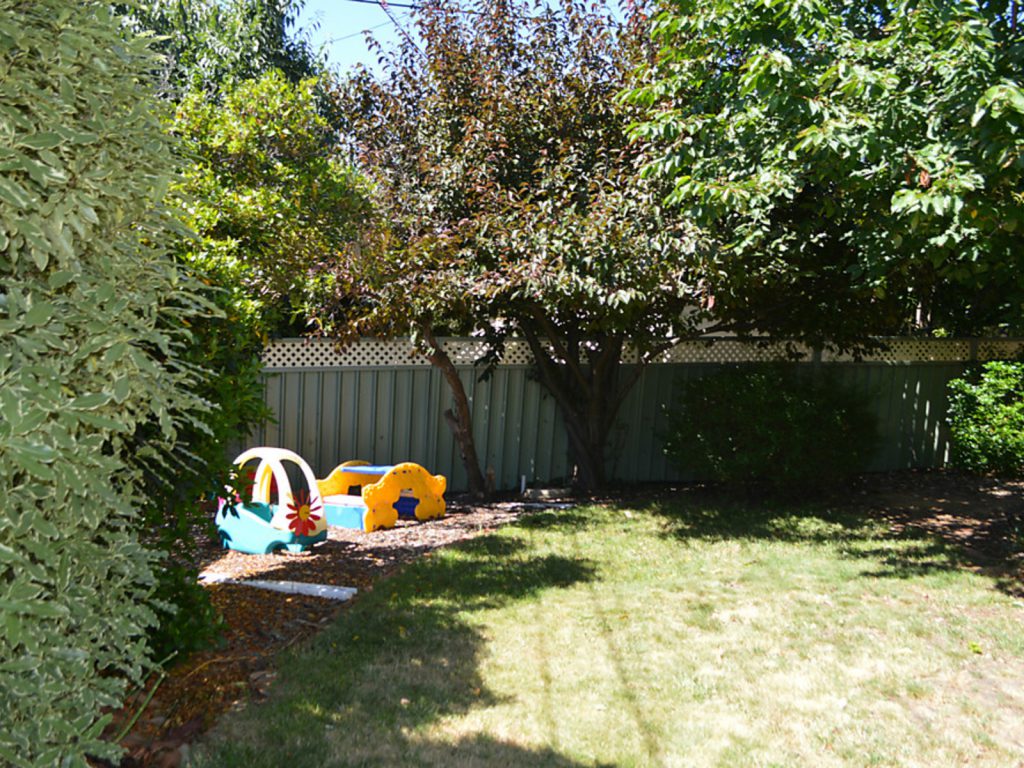 Established garden includes fruit trees, vegetable patch and leafy shade trees and shrubs.