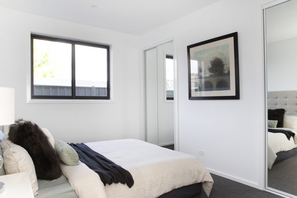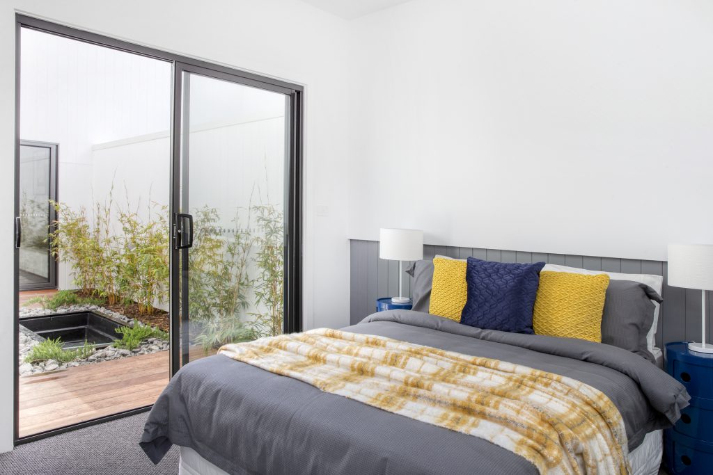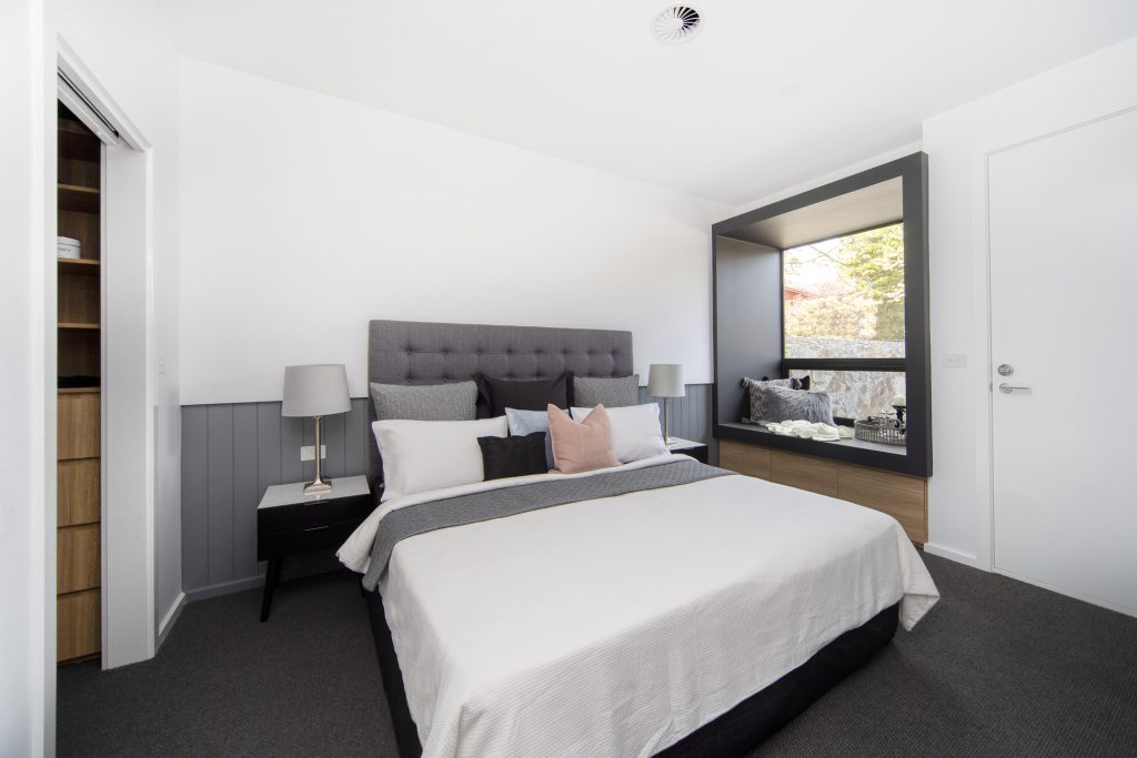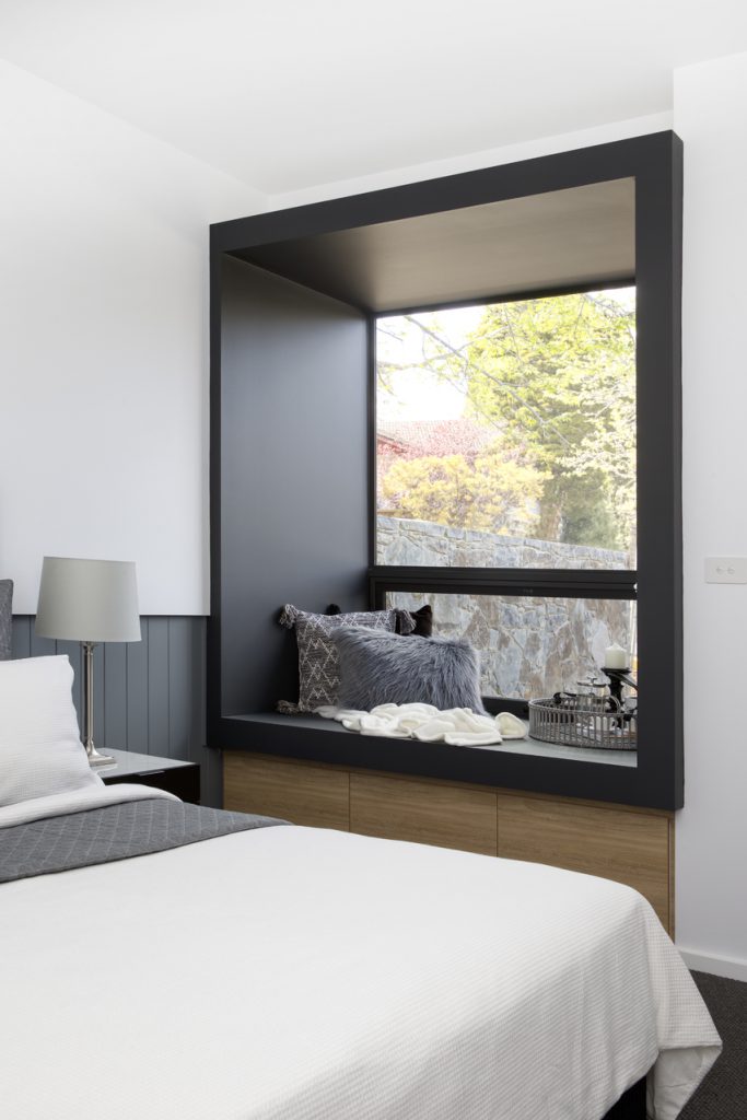 Master bedroom with custom walk-in robe and fantastic feature window seating area plus ensuite with double vanity and access to private courtyard.