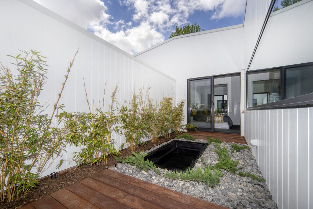 Manicured gardens with an internal atrium.